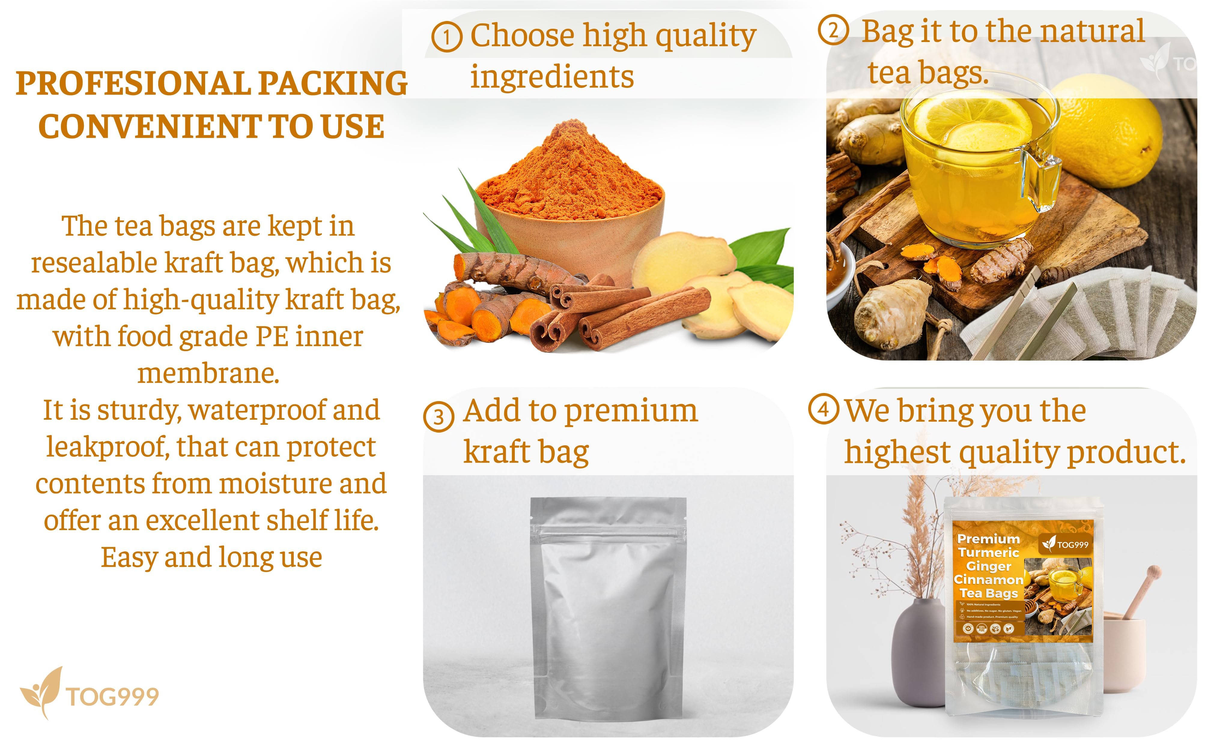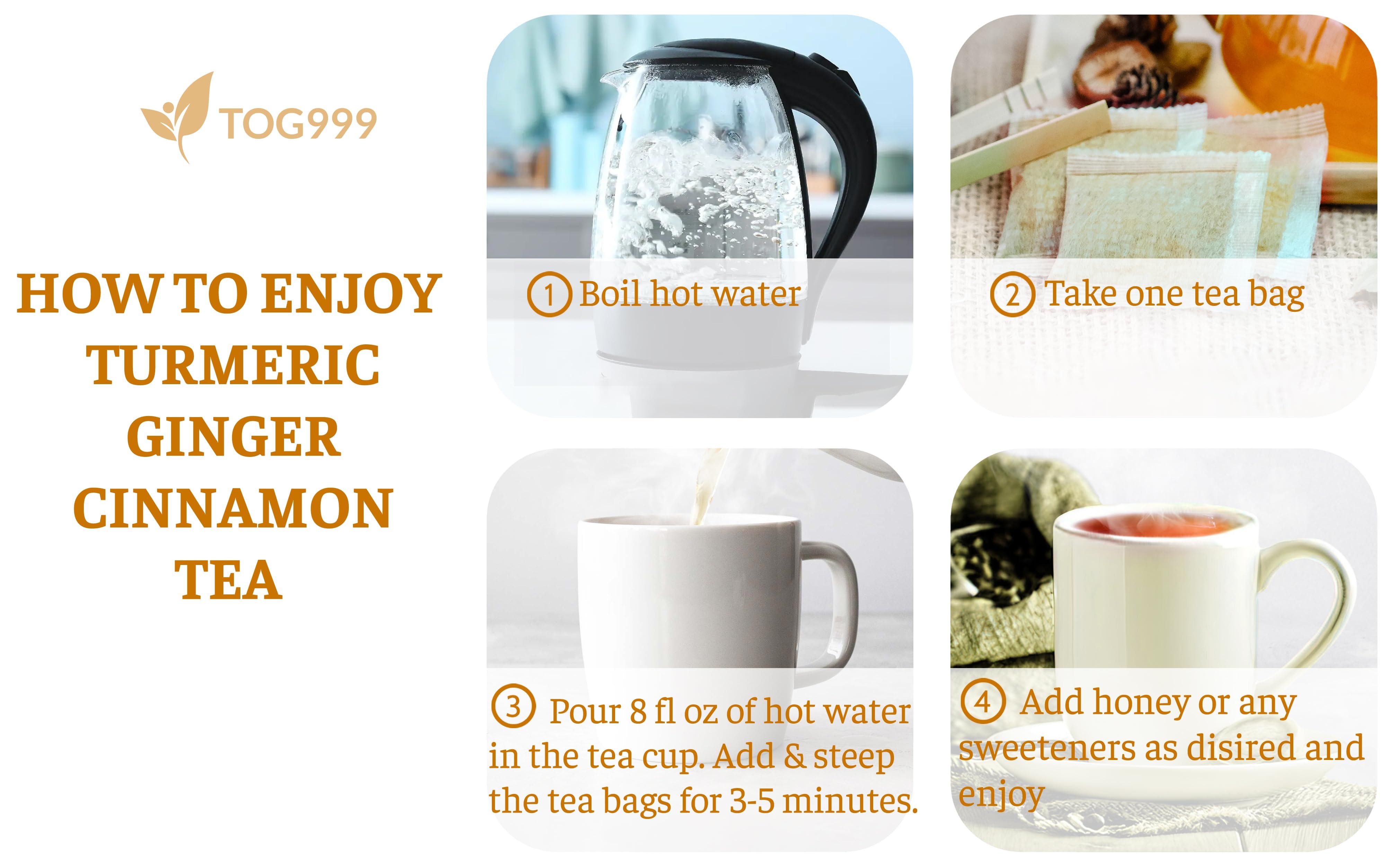 β PROMISE FOR HIGHEST QUALITY PRODUCT: We promise to deliver the highest standard quality products. If you have any questions about our Turmeric, Ginger and Cinnamon Tea Bags, just let us know, we are always happy to answer and appreciate your helpful suggestion