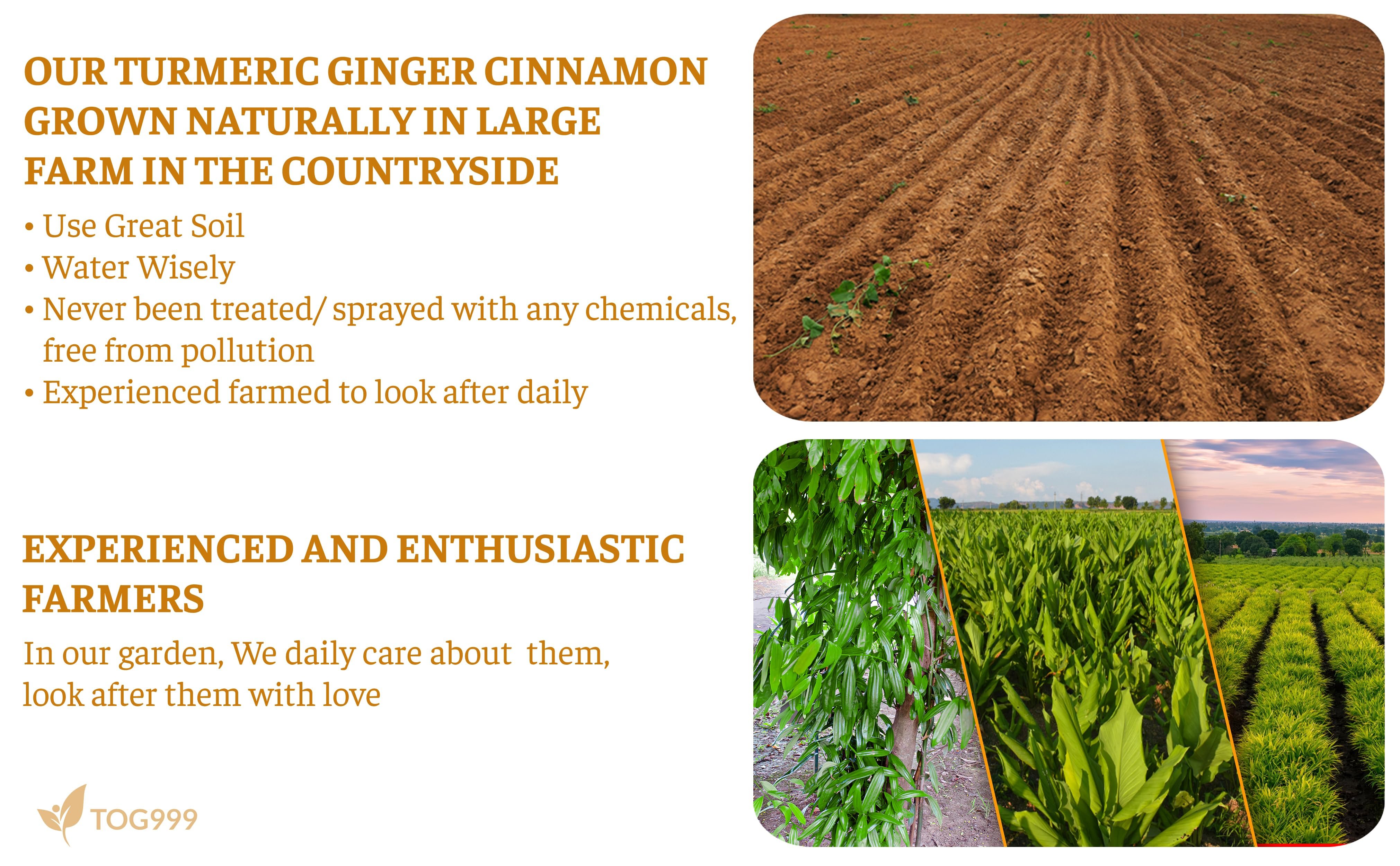 β 100% NATURAL TURMERIC, GINGER & CINNAMON TEA BAGS: Made of 100% Natural Turmeric, Ginger and Cinnamon. We follow strict international standards with No Pesticides or Herbicides used on these ingredients. Ensure unsurpassed quality for our customers. That's Our Promise. From Our Natural Farm to Your Cups!