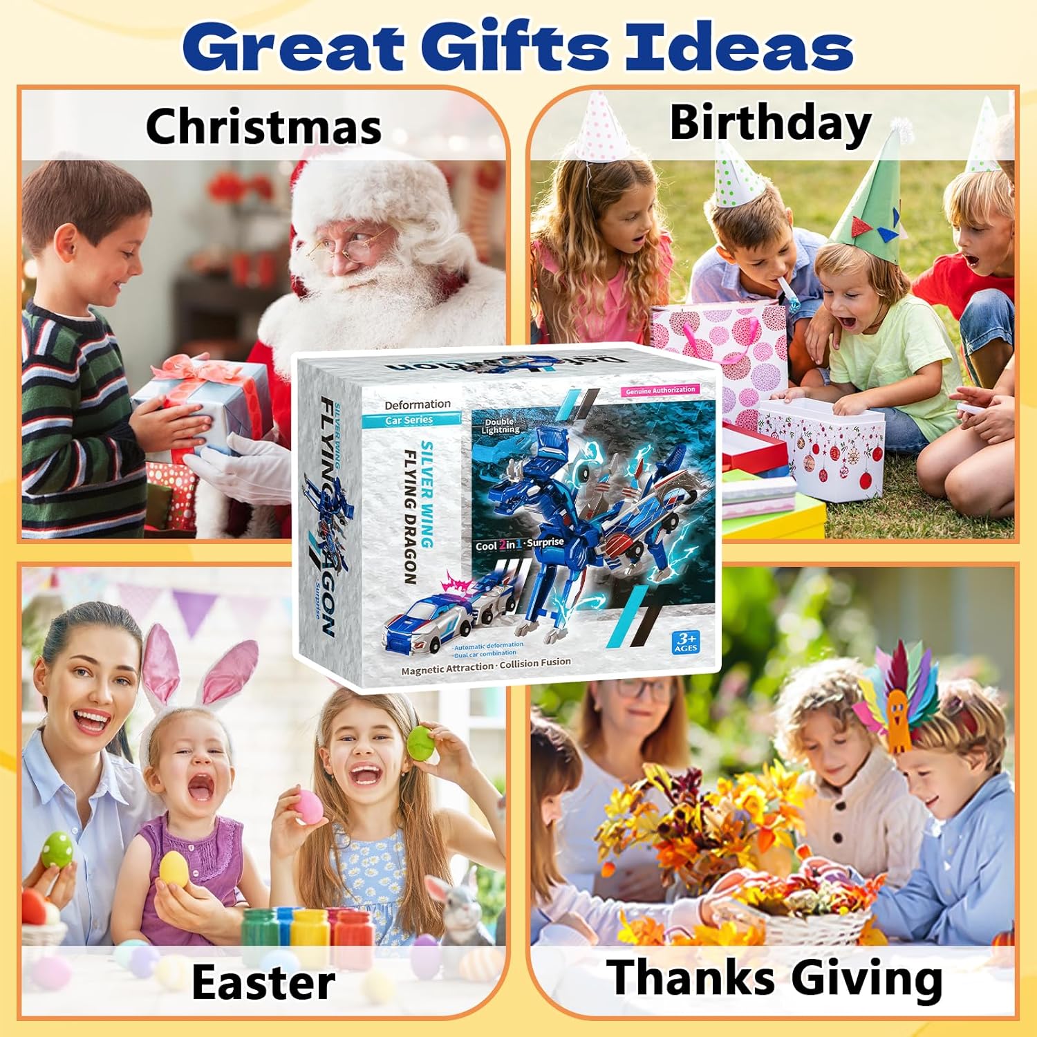 Ideal Souvenir Choice: With unique design and fascinating game concept, it is perfect for birthdays, festivals and other occasions. The magnetic transforming cars and varioustransforming dinosaur car are excellent choices in these moments.