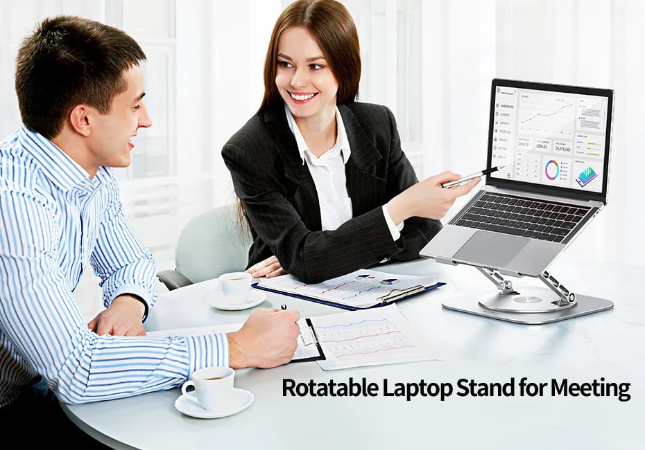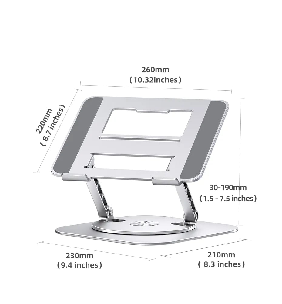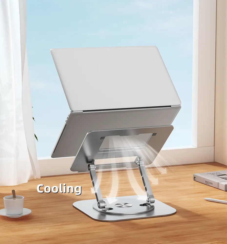 360 ° all-round rotation, easy to change the angle of the laptop stand, at any time to turn to deal with different occasions need the angle, and the sound issued by the rotation of the stand is very decompression.