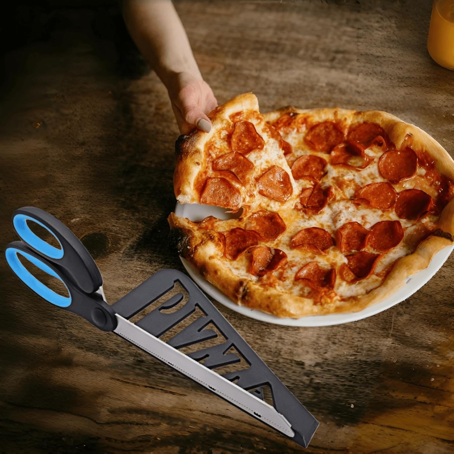 2-in-1 Scissors & Shovel Design: Combines pizza scissors and a shovel in one tool, cut the pizza with the sharp blades first, then use the built-in shovel to lift and serve slices directly, no need to switch between a cutter and a spatula