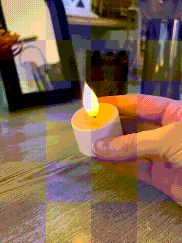 Realistic flickering LED flames mimic candlelight 🔥.